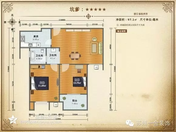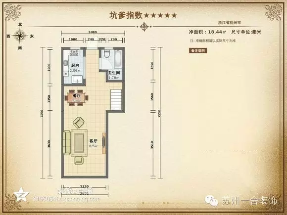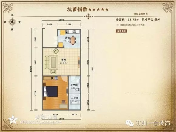 进门就是左手厕所,右手厨房欢迎你,尼玛这个卫生间和厨房还正对着门,大夏天的串起味来谁受得了啊~~~还有进深太过狭长,入户处连个换鞋的地方都没有,人性化设计太差!