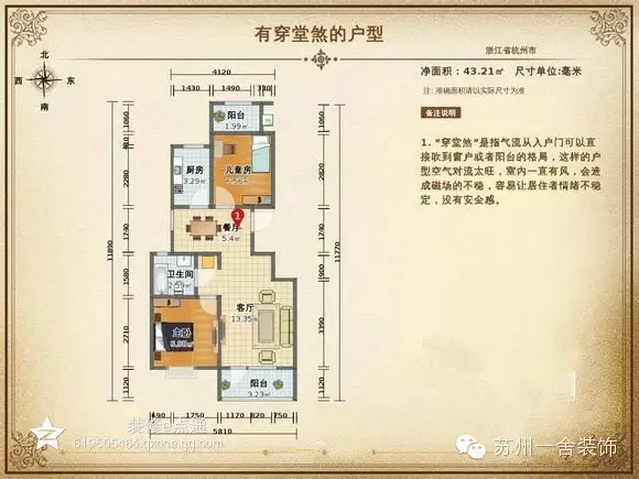 点评:这种空气对流太旺的户型老人一定不能住,容易引起头痛,对身体其他方面也不好。