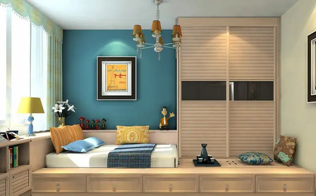 利用榻榻米作为床,衣柜直接放在榻榻米上,既方便实用,又节约了空间。