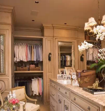 老年父母叠放衣物较多,通常挂件较少,因此设计时可以考虑多做些层板和抽屉,而老年人因身体状况,不宜上爬或下蹲,衣柜里的抽屉就不宜放置在最底层,应该在离地面1米高左右,有条件的话,最好考虑衣柜上层装有升降衣架。
