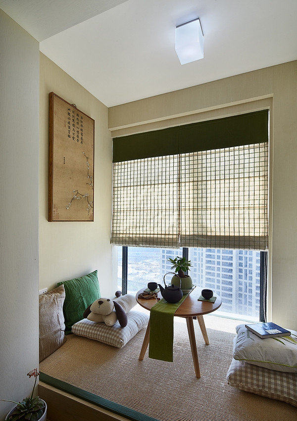 非常喜欢榻榻米的感觉,这也是我们喜欢日式元素中的一个。经过设计师的规划,储纳、休息、采光都有合理舒适的状态,我跟LG现在经常坐这边畅谈人生理想,互相鼓励打气,我们要从美好生活走进更加美好的生活,抛开忙碌的烦恼,心更静,时间就会慢下来。