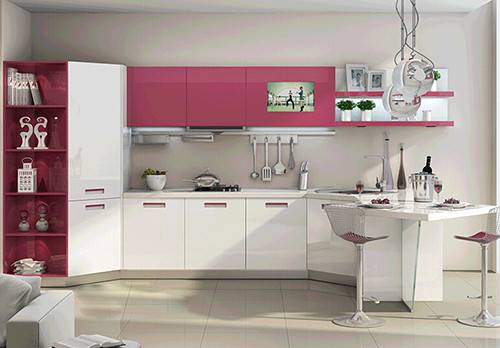 玫红色的融入使产品更具色彩,开放色的设计层次更加丰富。内嵌拉手点缀门板色彩,与整体结合交相辉映。