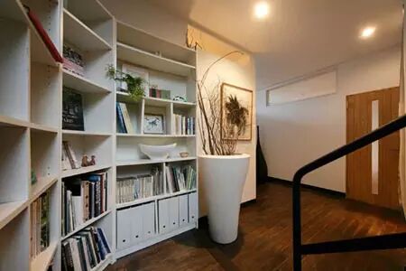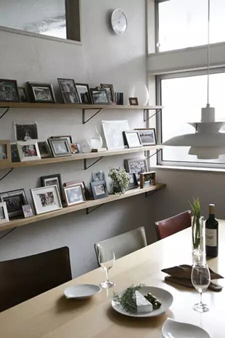 木质的地板搭配木质的家具,一体感一涌而出。用木板打造的收纳架,搭配黑色金属支脚,坚固耐用。摆放上装饰品等,使得空间更富有情调。
