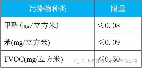 装修污染源的构成主要为甲醛、苯和TVOC等,国家标准(GB50325-2001)中也对住宅环境污染物浓度限量做出了如下规定: