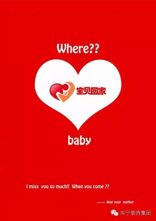 告诉孩子:找不到爸爸妈妈,你就去华宁装饰!我们会去接你的。华宁装饰全国200余家门店将成为中国失联儿童守护站!只要孩子进了华宁装饰即便暂时与家长失去联系,TA也不会被拐卖或出现意外。请告诉您的孩子,万一走失找不到家人,街边每个有宁宁卡通的蓝色门店都是安全守护站,华宁装饰集团全国20000多员工形成强大互通网络平台,高效迅速为您寻找失联家人!华宁装饰,公益大行动,转起来!