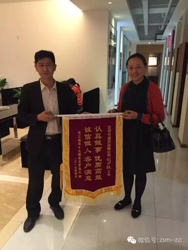 作为一位装饰人,最让我们值得骄傲的事情,无疑是客户把他的房子交给我们,而最让我们感动的事,无疑是我们的付出得到业主的肯定。昨日,我们的荣誉墙上又多了一面锦旗,龙江雅苑罗女士赠与宅速美主任设计师胡家生,和优秀工长刘少现。每次客户对我们的满意和肯定,才让每个装饰人的付出有了价值和存在的意义。