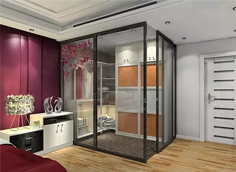 房间很大,做一个L型的衣柜,再用玻璃门隔断开来,就变成了美美的衣帽间~