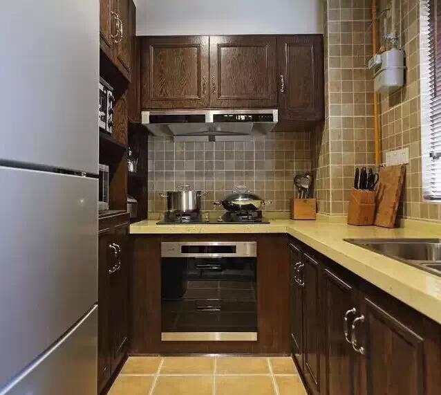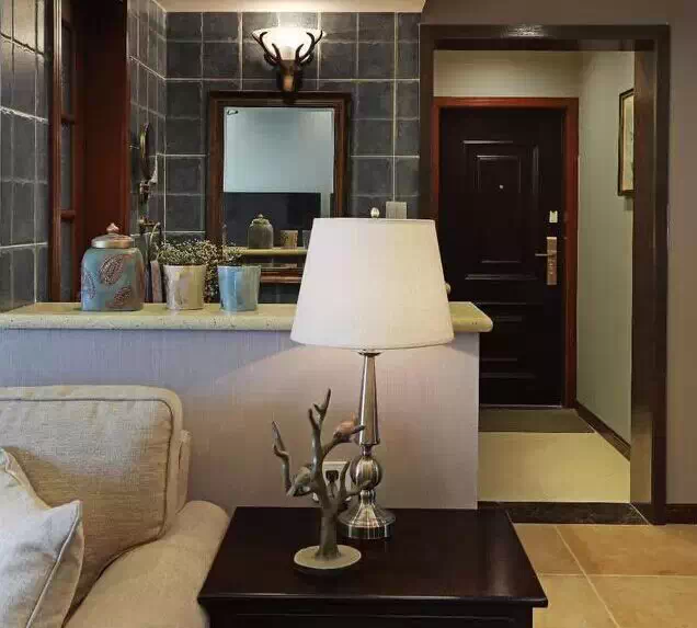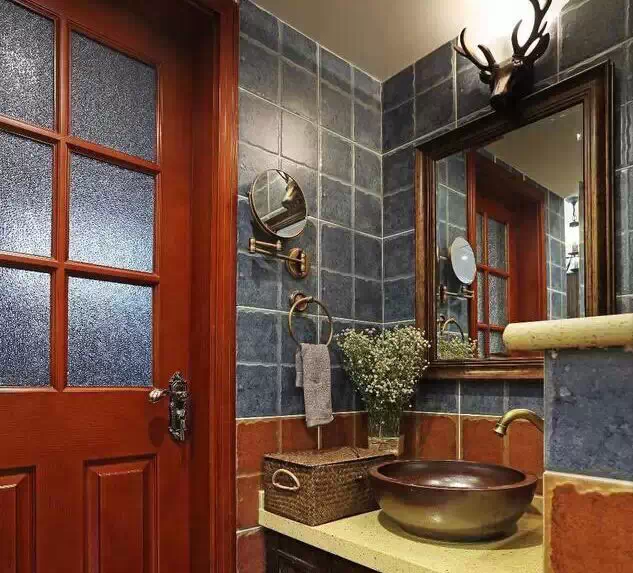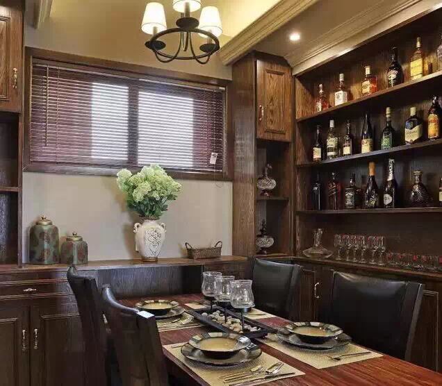 以美式乡村作为原型,深色而厚重的木质美式家具,粗犷而颜色跳跃的仿古砖墙面,拱形元素的造型特点,浓浓的乡村情调在整个家里弥漫开来。
