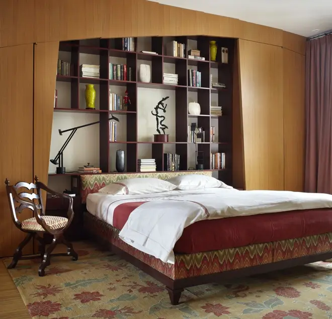 No.3 整体书柜,连接两边柜体的书柜,增加卧房的藏书空间,是爱书之人的福音。