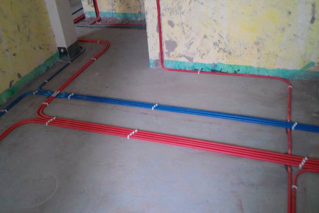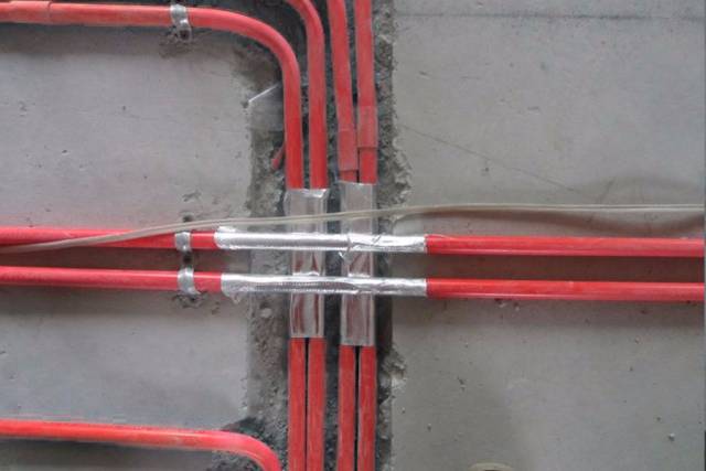 部分线管交叉处埋入地下,以免造成后期地面施工不平整。