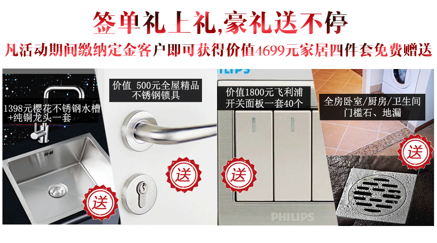 签单礼2:凡活动期间缴纳定金客户即可获得价值1800元飞利浦开关面板一套40个