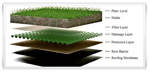 2、种植土层,一个基本的概念是,草坪需要至少10cm左右土壤层,灌木需要30-60cm,乔木需要60-90cm左右,土壤层之外还要留出至少5cm的厚度给排水防水结构层。