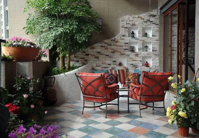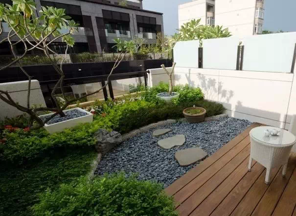 当然,还有一种有流水、假山假石的生态花园,对于家里的阳台面积比较充裕的就很适合。