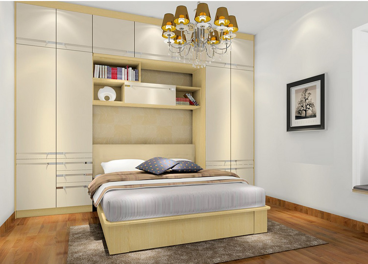 床嵌合在两个柜体之间,专为小户型设计的床柜组合,完美地利用了空间。