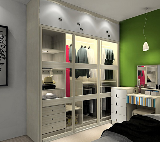 可以将衣柜按衣物更换频度划分为三个区域:过季、当季、常换。在衣柜的顶部安排三隔层板,用于叠放除当季以外三个季节的衣物,而下部靠中间部分因为在移门内侧,存放当季衣物,也可以叠放,但比顶部容易取用。在衣柜中部的两侧靠近移门口顺手部位安排几个抽屉和挂衣区,用于存放最近常更换的衣物,这样每次换季的时候将过季衣物从中部叠衣区移到顶部过季区,将当季衣物从顶部更换到当季区,就不会出现找T恤的时候满眼都是毛衣,找大衣的时候又满眼都是衬衣的烦人情况。