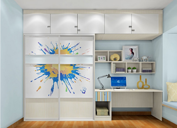 儿童的衣物,通常是挂件较少,叠放的衣物较多,且考虑到儿童玩具的摆放问题,最好能在衣柜设计时就考虑一个大的通体柜,只有上层的挂件,下层空置,可方便儿童随时打开柜门取放和收藏玩具,满足儿童好玩的心态。