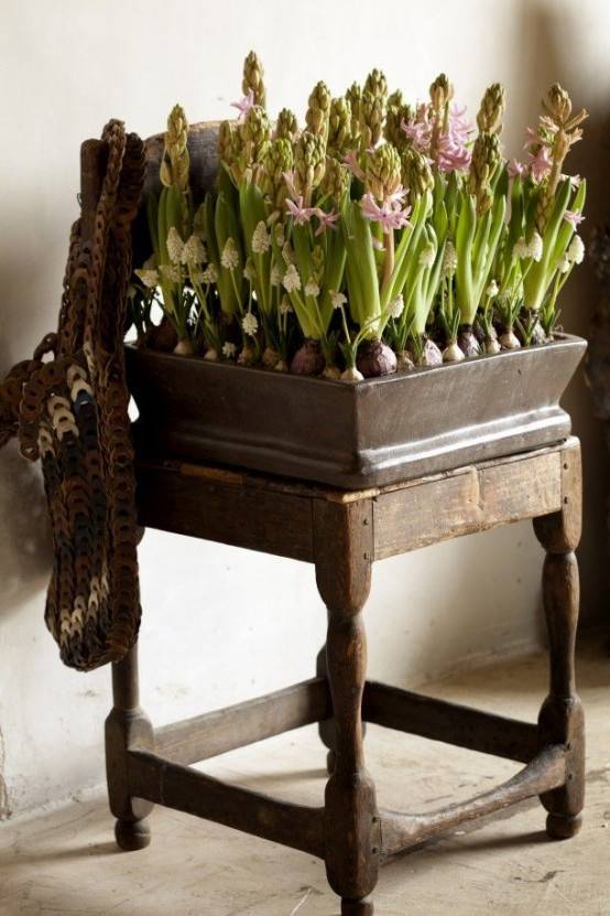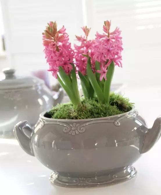 风信子的花香很浓,要注意哦,下面如此耳目一新的风信子安排你见过吗?茶壶里长出风信子,别致的复古,万紫千红的风信子在室内盛开。