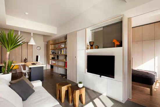 小户型面积有限,充分的收纳可以达到节省空间、延展视觉的作用,但利用空间要合理有度,过度收纳只会使空间更显密集和拥挤,令人产生压抑之感。