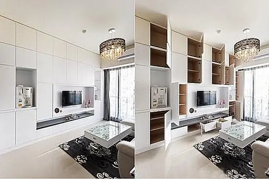 徐州城市人家装饰:购置内嵌式或者内藏式的收纳家具,避免过多物品收纳在外阻碍视觉,墙上搁板收纳不宜过多,一面墙足以。