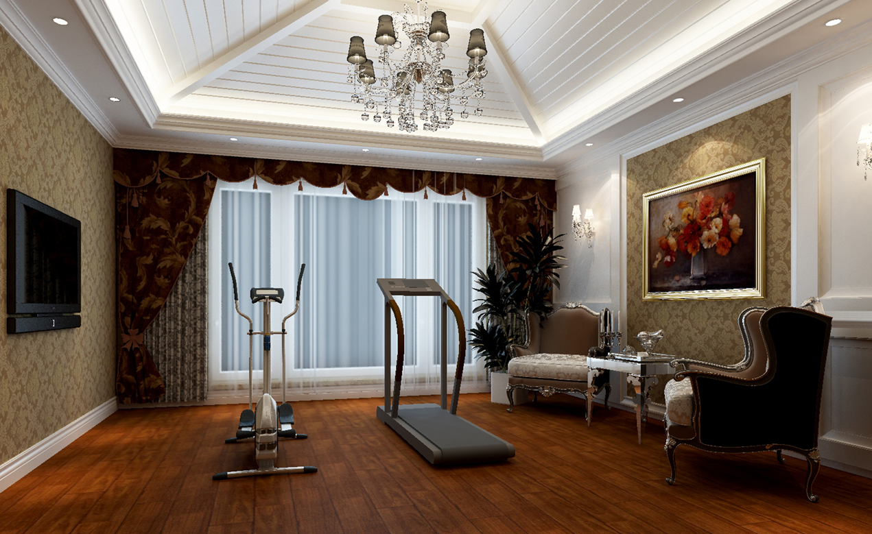 三层的空间是一个户外空间的设计,健身,沐浴阳光,都可以在这里得到放松,还有大的衣帽间,空间功能上,满足了主人的一切需求,同时表现了典雅高贵,具有浓厚的文化气息。