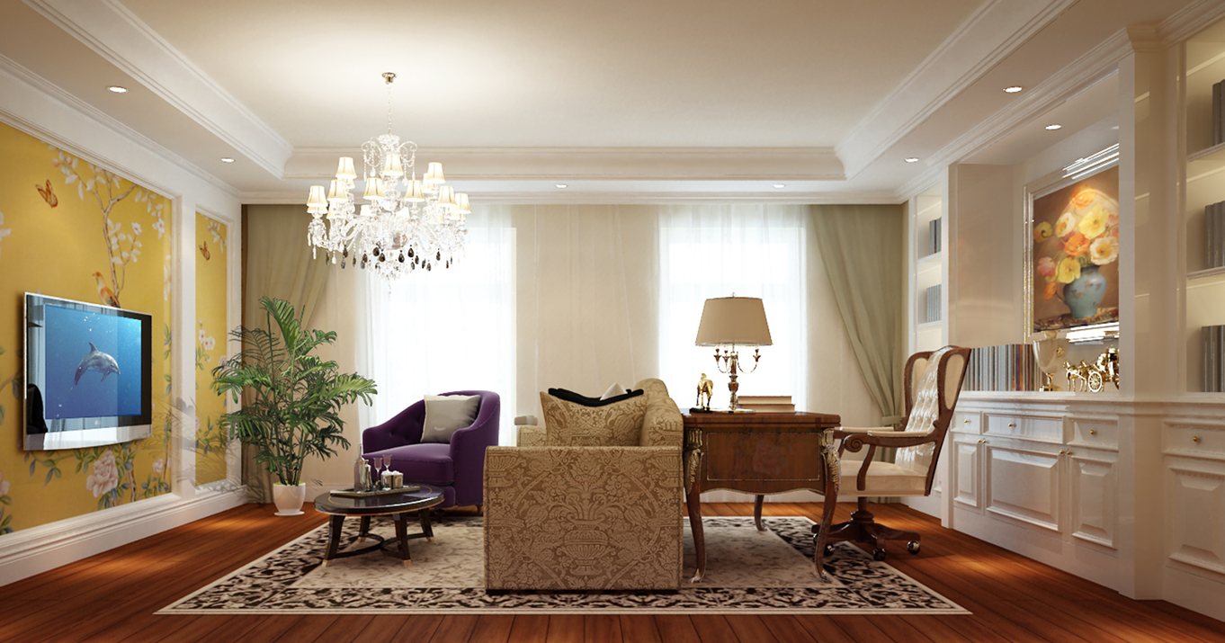 舒适中带着木质的硬朗,造型加上古典的沙发配饰,奢华的感觉由然而生。整体设计以温馨为主点,不管外面的过程多么喧嚣,回到家,就像回到了港湾,休息的地方需要的只是舒适与温馨! 设计师使舒适与温馨能够完美的体现。更多的肩负着很多的责任,游戏、休闲、办公,多样化的功能集合设计的重点。欧式雅致表现了居住人追求品质、典雅生活,一步一步的美妙节奏,优雅随之而来,如沐浴在阳光下,享受生活从这里开始……