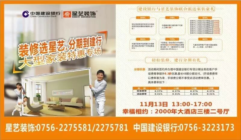 在星艺开工并选择建行办理家装分期业务的客户可再享返2000元;