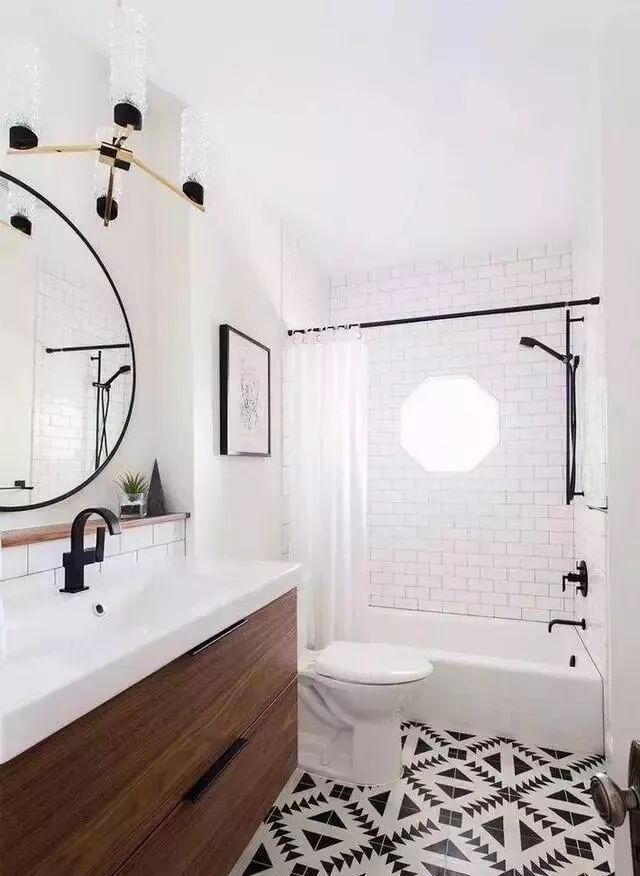想让卫生间出彩,能想到的办法就是巧妙利用瓷砖的图案与色调了,当下大家装卫生间都不通铺瓷砖了,而是都流行加点花砖。在墙壁上或地面上,或者两者都可以,可以选择全铺、或在特定的局部铺设花砖,以起到点缀的作用,增加卫生间的美观性。