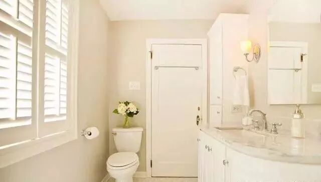 大多数家庭的卫生间户型都比较小,窗户很小甚至没有窗户,能有一扇通风和日常光照的窗户就很不错了。所以这类的卫生间装修时建议卫生间以浅(亮)色调为主,增加空间的敞亮度。谨慎使用深色调,否则只会让小空间更显压抑,同时影响美观性。