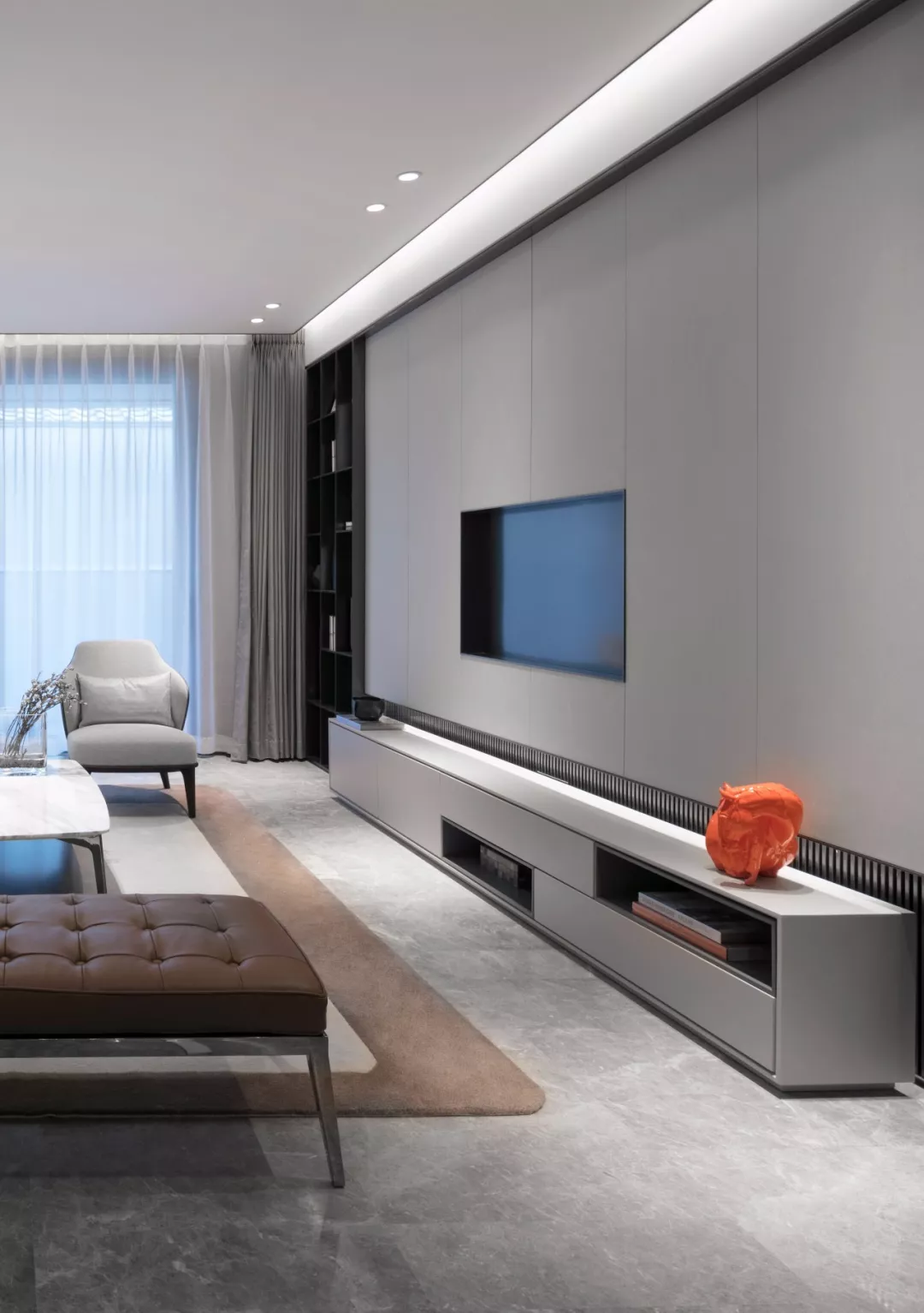 无论室内室外,灰色调无处不在,没有张扬,只有低调与奢华。