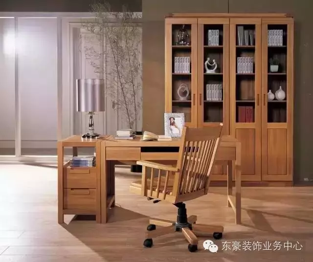 A、造型简洁、对称的实木书桌