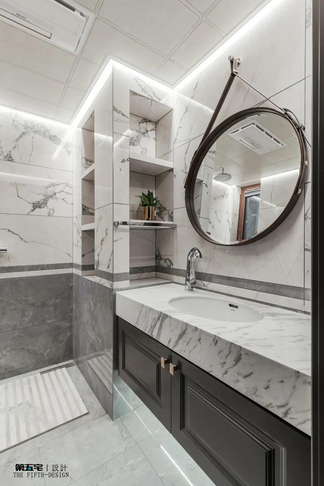 △卫浴间,设计师巧妙地运用圆镜来提升空间的精致气质,