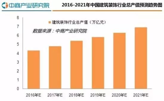 到2016年,我国建筑装饰行业的产值将达到4.3万亿元,较2010年再增长110%。中商产业研究院行业研究员根据上述预测,对2016-2021年我国建筑装饰行业产值的增长幅度及产值预测如下: