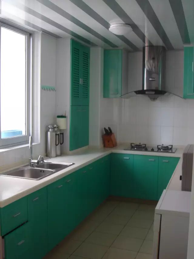 较长的厨房不宜做U型橱柜,但业主要求这样做,只要配合购买好相应尺寸的厨电,合理安排空间,这样的窄U形橱柜也能用得得心应手。