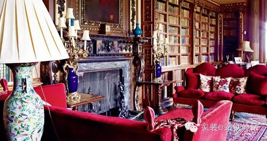 另外,沙发是书房里不可缺少的家具。像唐顿庄园中,书房里摆放的那个高靠背的大红色的沙发,就巧妙地成为了书房的中心,不仅因为颜色够跳,而且放置于中央的位置,体现了贵族之家的大气。同时红色绒布显得奢华,后面浅色花纹布艺沙发更是点睛之笔,让偌大的房间多了一点暖意。