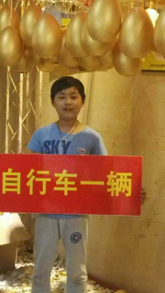 看我们的小朋友多开心,砸金蛋砸出两辆自行车,都是小朋友砸出来的哦