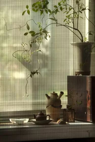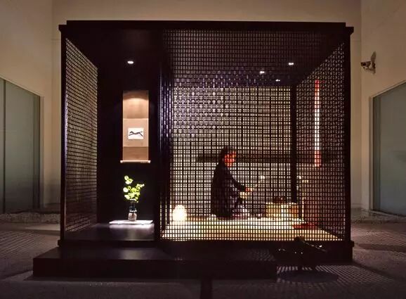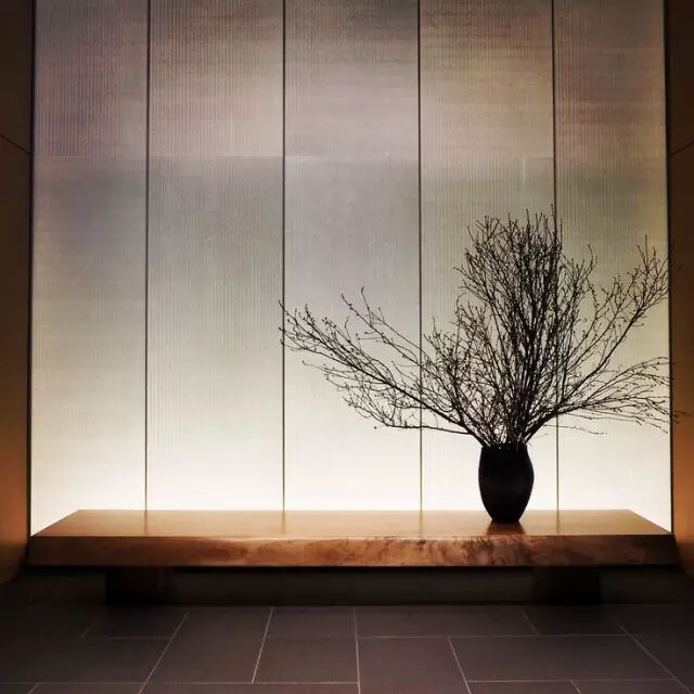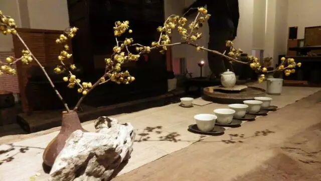 采用枝条类东方插花,以体现茶室的和、静、清、寂。