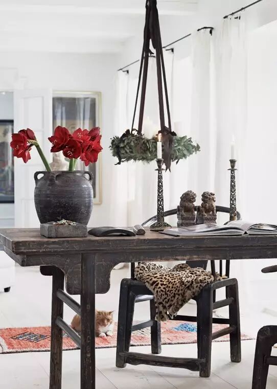 在门厅和楼梯挑高位置,此空间宽阔,适合体量大的花艺。