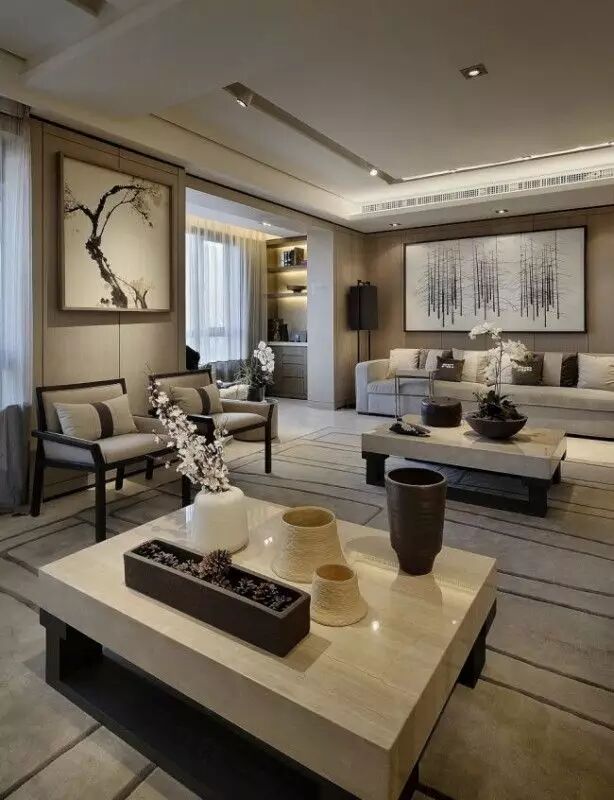 新中式风格是中国国力增强,民族意识复苏,文化复兴的自信表达,是对其充分理解的当代设计,含蓄隽永,端庄丰华。在造型上,摆脱了传统符号化的堆砌,讲究的是东方绘画中的韵律美与现代设计风格结合,形成符合现代审美需求、极具东方美感的设计风格。在色彩上,采用的中性灰色彩,给人优雅温馨、自然脱俗的感觉。
