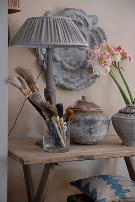 床头柜的面积所限,体量不会太大,基本和台灯等陈设搭配运用。