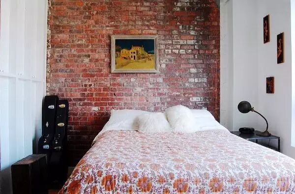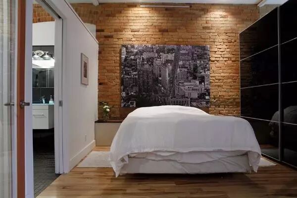 如果“金属”是工业风格主要元素之一,那么“砖墙”和裸露的“混凝土墙” 占据了主要元素的一半。重点是保持卧室的氛围尽可能是自然的。有些业主已经把目标转向了涂鸦作品,这样可以让卧室富有更真实的魅力。
