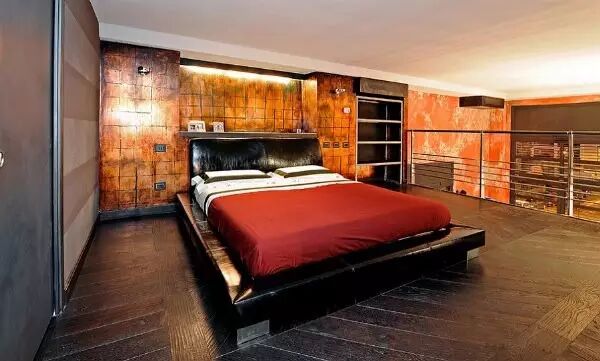 设计师发现仅仅只是外露“管道”和“电线”是不足以呈现工业风的,比如你重塑一面墙你可以利用氧化铜面板、时尚的金属色瓷砖与华丽的图案,这样搭配或装饰才能真正地塑造一个富有想象力独特卧室。