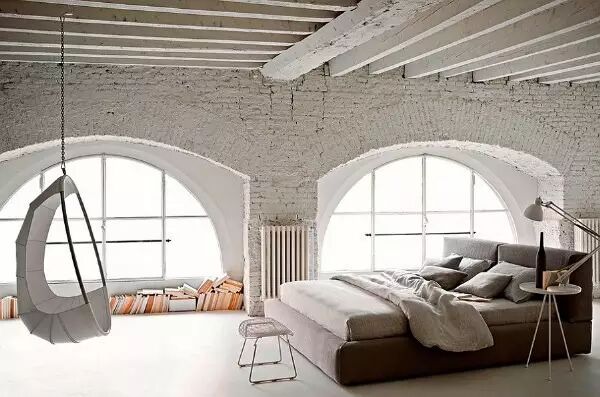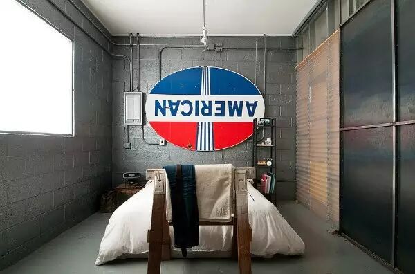 如果条件允许的话,添加“钢结构”的隔断或金属制的家具,这样的方式让你的工业风格卧室氛围棒棒哒!