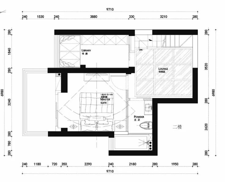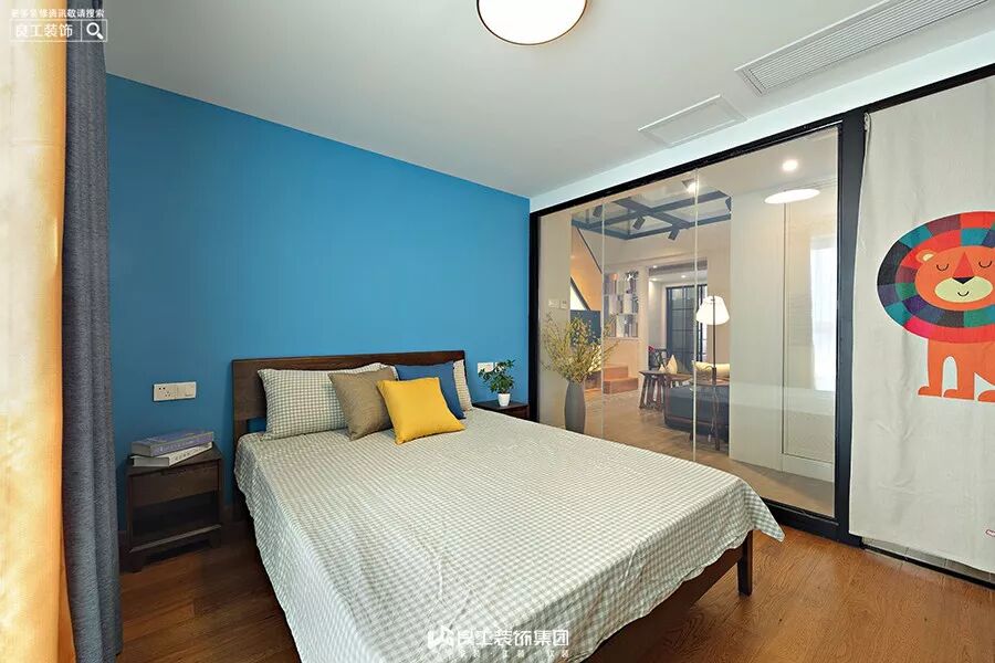 次卧设计在一楼,整体布置与主卧有着异曲同工之妙,隔墙去掉实体墙,直接采用玻璃隔墙,解决了客厅没有自然光的问题。
