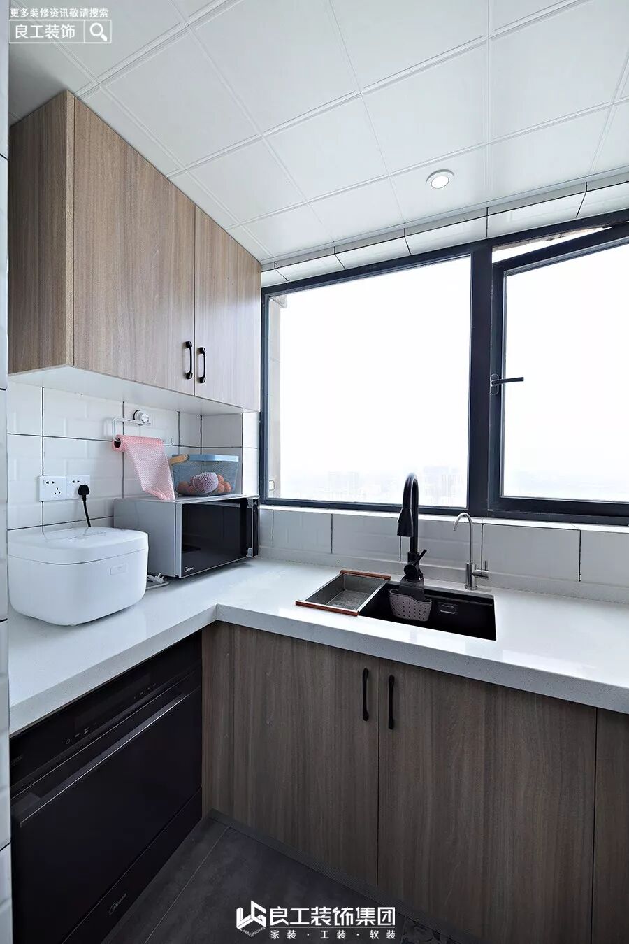 设计师将外面阳台包进来做了长条形的厨房,空间不大却将屋主所想要的功能都设计进来了。