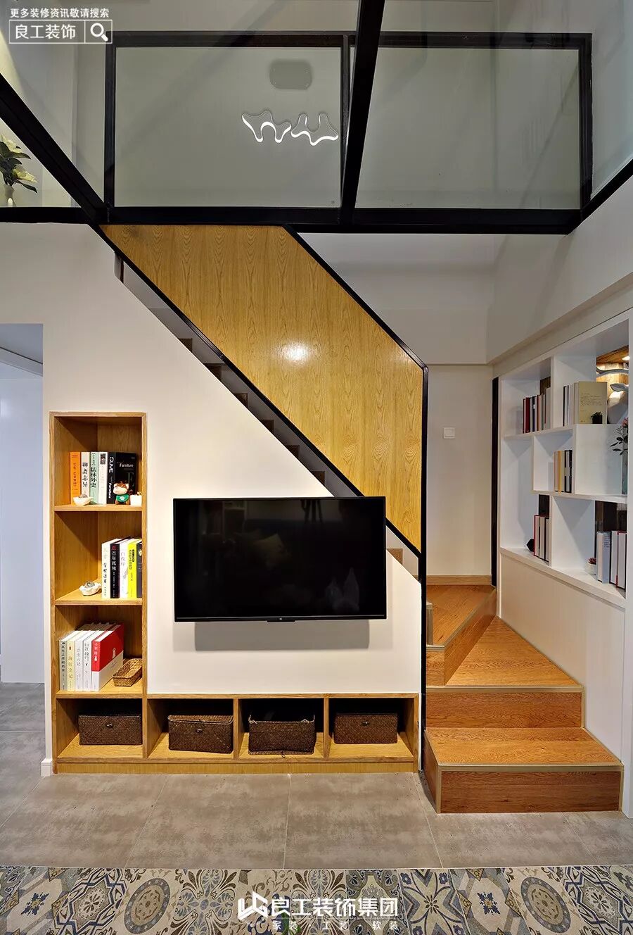 电视柜和楼梯采用的原木材质,给整个家注入一种温润感。房子面积不大,能利用到的空间都做了储物,好看的房子也要实用才适合居家。