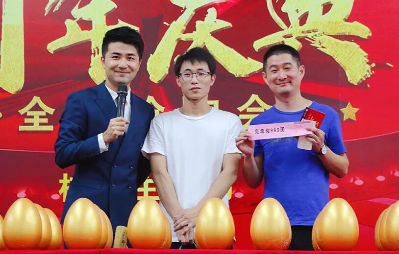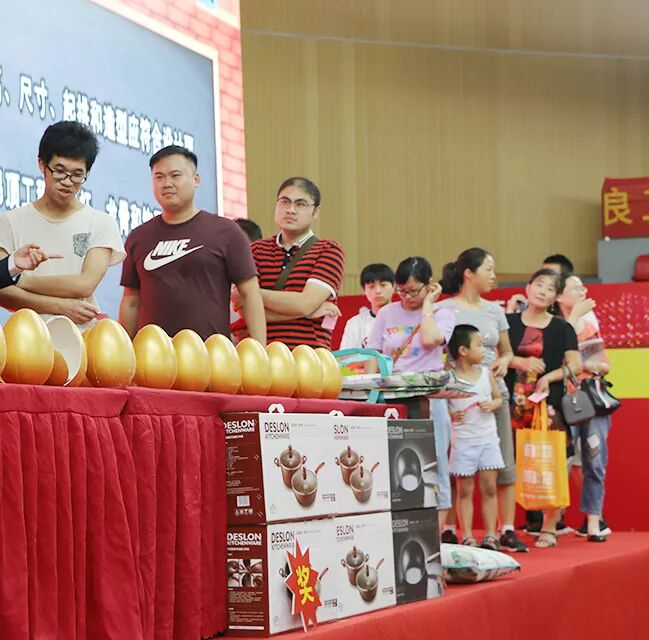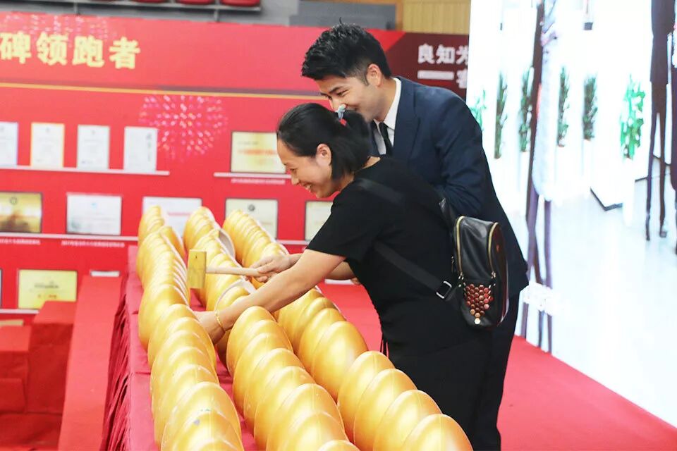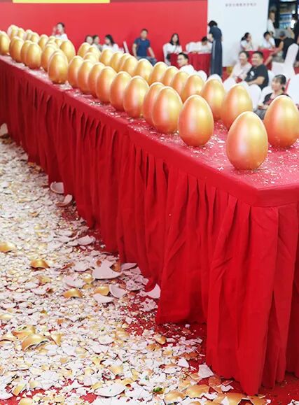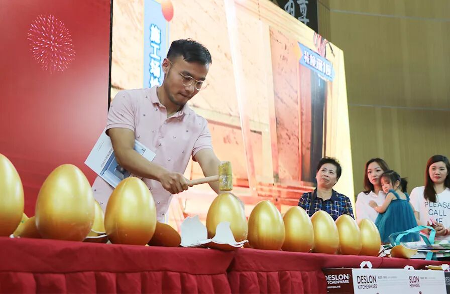 不一会的功夫,从台上到台下就排起了长长的队伍等着砸金蛋~