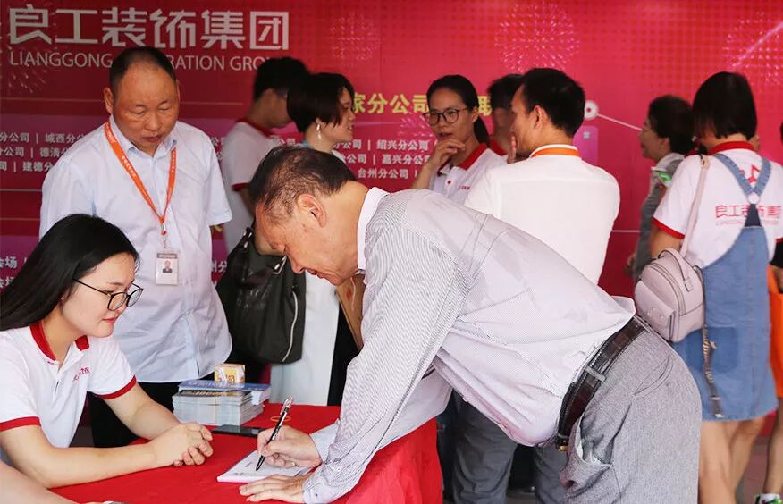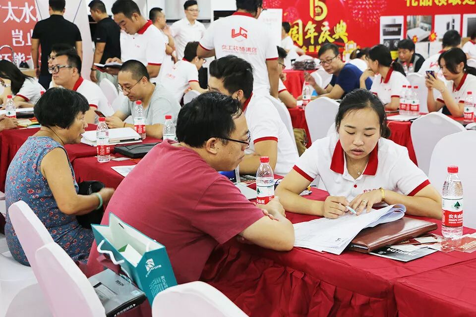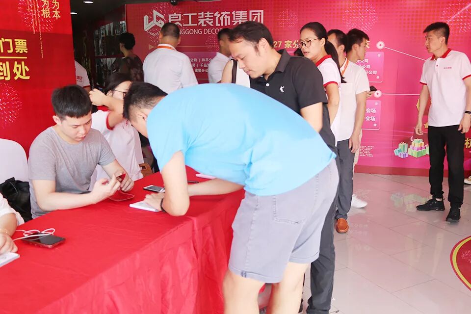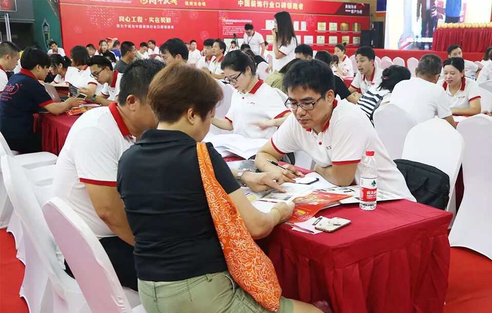 活动当天设计师们早早就来到了活动现场,提前准备好谈方案所需的一切资料;业务人员也早就站在了会场与停车场的入口处,等待着客户的到来,为客户指引带路。虽然天气受台风“山竹”的影响飘着乌云,但是丝毫没有影响到我们客户的装修热情,光杭州主会场就有700多位业主朋友到场参加我们当天的庆典活动。其中不少业主朋友是从临平、萧山、富阳、临安、绍兴、桐庐等地匆匆赶来。
