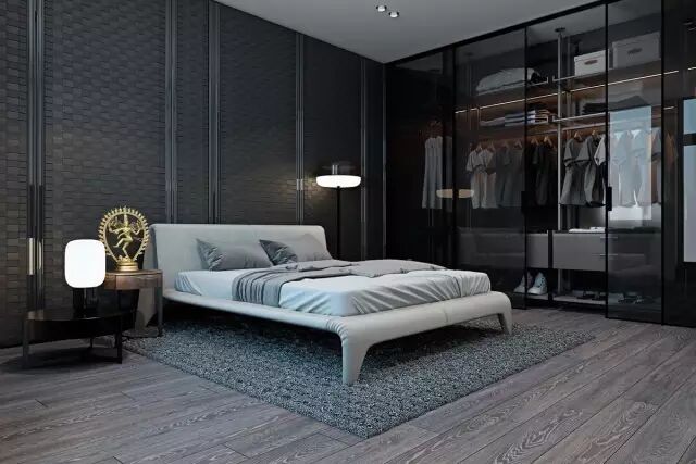 灰色是男人一生钟爱的颜色,就像这个卧室一样。