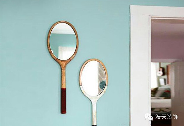 2 网球拍改成墙上装饰镜子,艺术感十足