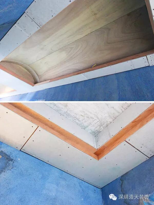 之后才是面板装订,浩天专用的面板是埃特板,因为它比商场上的石膏板具有更好的韧性,防潮性。